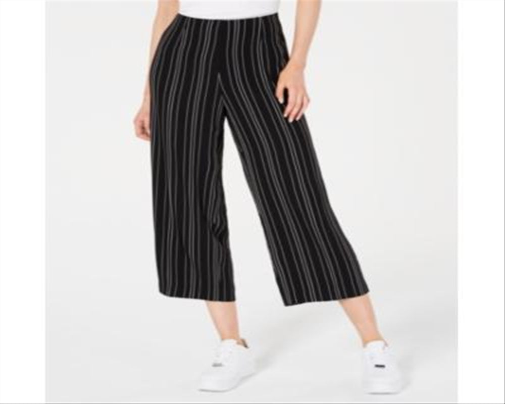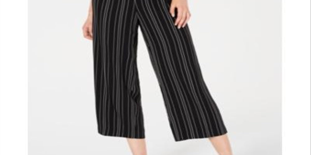 O bar iii pega uma calça listrada tradicional e moderniza o visual com este estilo exagerado de perna larga | é curto e casual para dias tranquilos no escritório