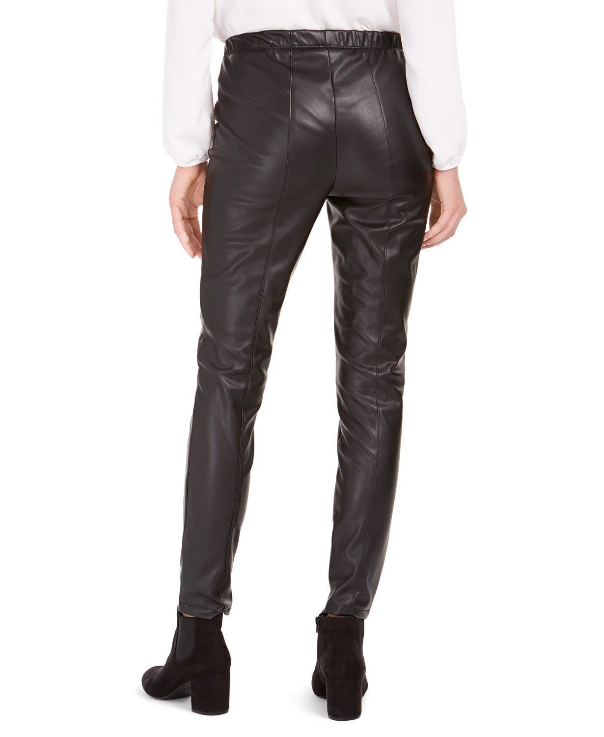 Costura interna aprox.: 28-1/2" | Cós médio; ajuste justo nos quadris e coxas; perna skinny | Estilo pull-on | Zíper oculto no punho interno; acabamento em couro sintético | Poliuretano