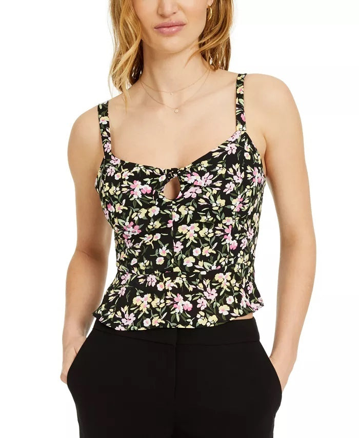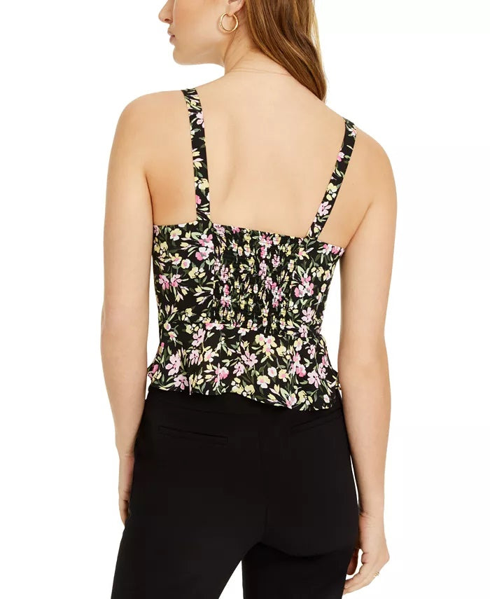 Blusa Peplum com Estampa Floral Feminina Bar III, Preta, Tamanho Médio