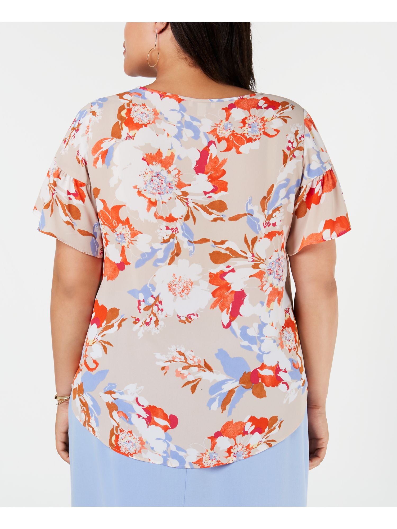Blusa feminina Bar III com estampa floral, manga curta, gola redonda, laranja, tamanho 1X