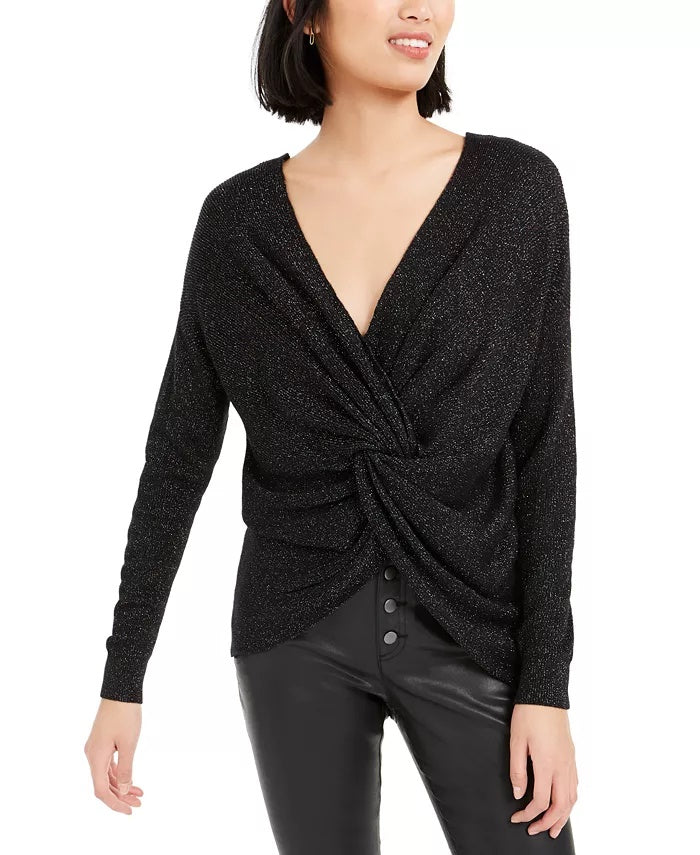 Comprimento aproximado: 16-22/25" | Decote em V | Detalhe torcido nas costas | Acrílico/nylon/poliéster/metálico/lã | Lavável à máquina