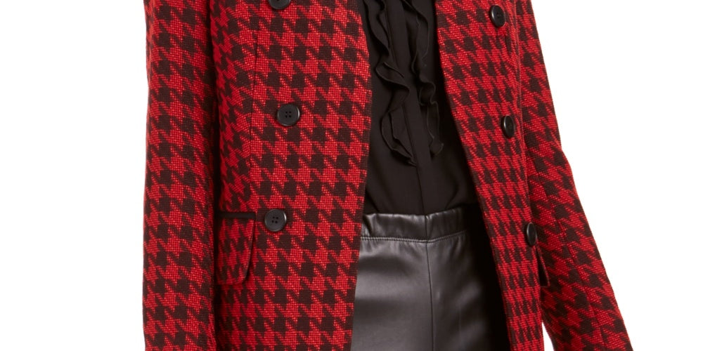 Jaqueta feminina Bar III, sem gola pied-de-poule, abotoada dupla, vermelha, tamanho 6