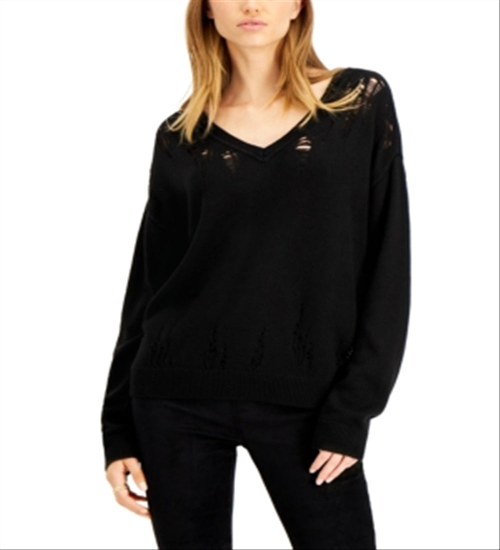 Suéter feminino Bar III de manga comprida e gola V, preto, tamanho XXL