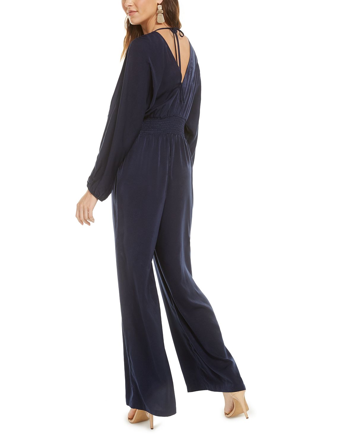 Macacão feminino Bar III de manga comprida e perna larga, azul, tamanho grande