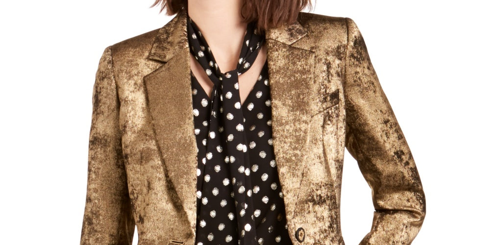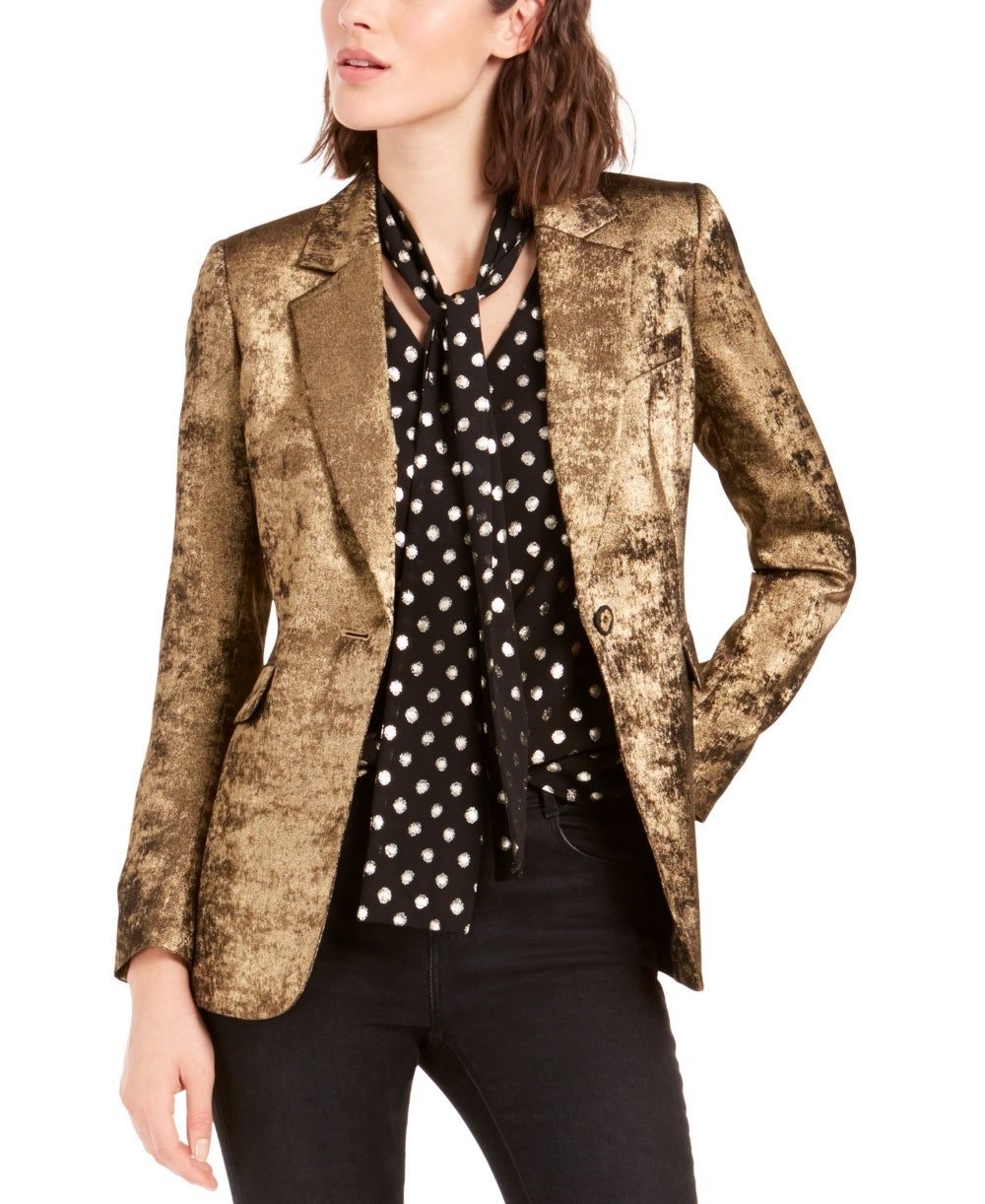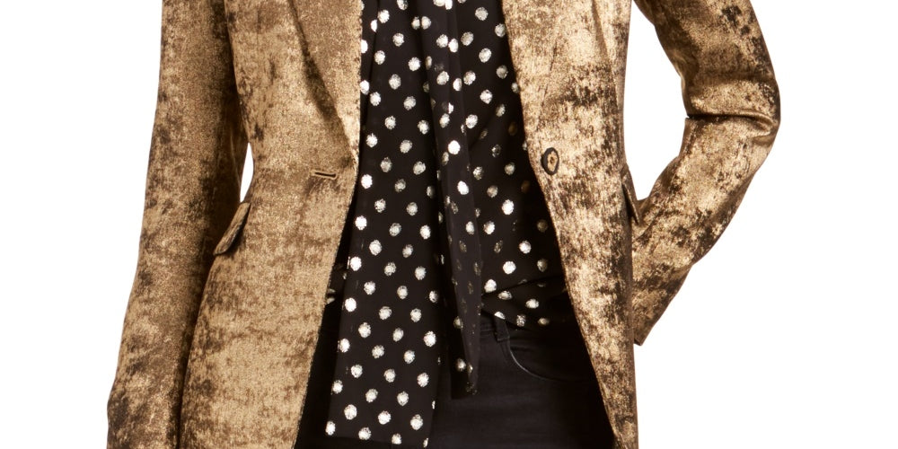 Blazer metálico feminino Bar III com um botão, dourado, tamanho 2