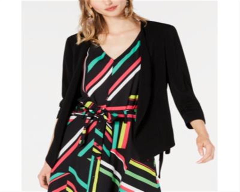 uma versão suave do blazer clássico | esta jaqueta bar iii fica aberta na frente | franzidos em cada punho e laterais com cadarço adicionam um elemento de conforto