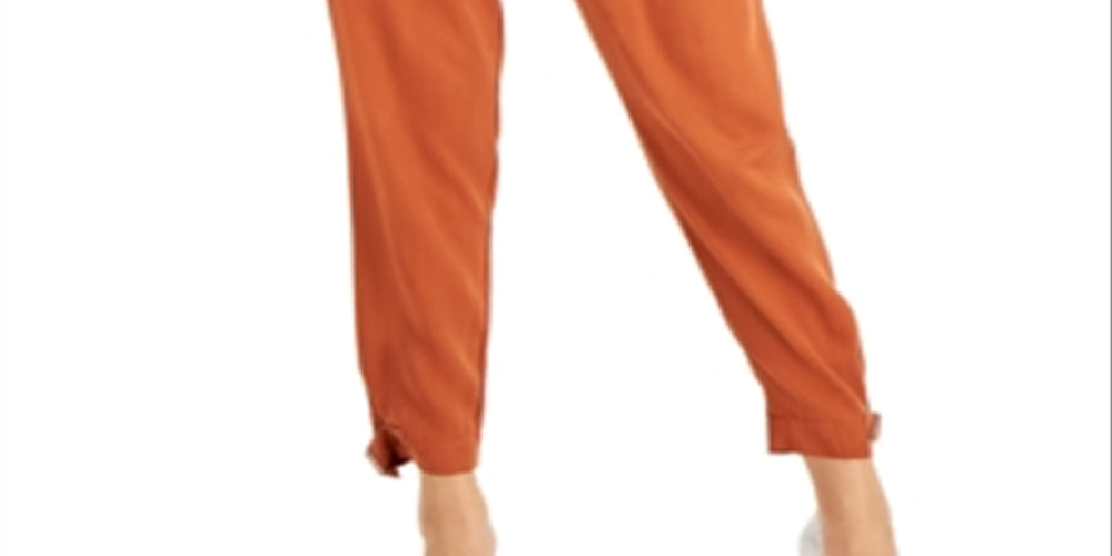 Uma perna afunilada atemporal e um cós alto elegante dão um toque descolado a estas calças utilitárias plissadas da Bar III | finalizadas com fivelas ajustáveis nos punhos