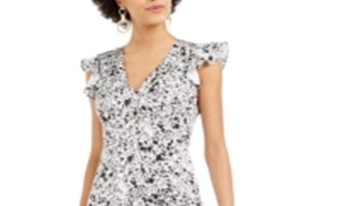 Decote em V | Fecho de zíper nas costas | Mangas curtas esvoaçantes