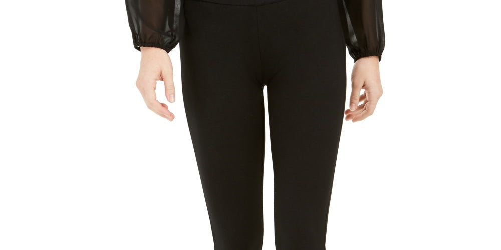 Comprimento interno aproximado: 28" | Cintura média; ajuste skinny nos quadris e coxas; perna skinny | Estilo pull-on; cós elástico | Detalhe de botão na frente da cintura