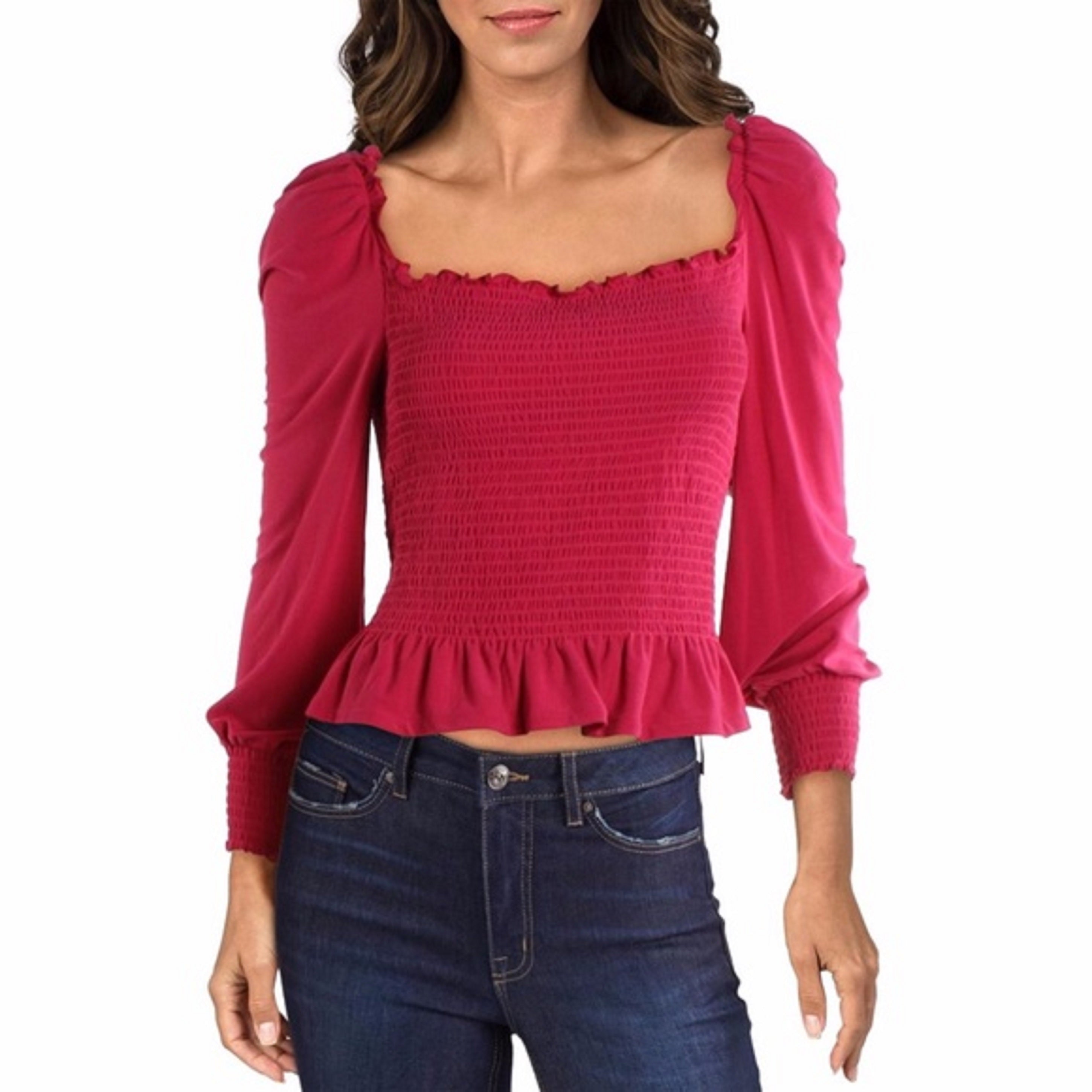 Blusa feminina Bar III com decote quadrado e franzido, vermelha, tamanho pequeno