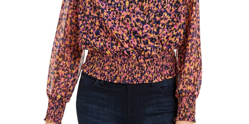 Aproximadamente 20-3/4 de comprimento | Decote sobrepeliz | Punhos e bainha franzidos | Mangas blusinhas transparentes