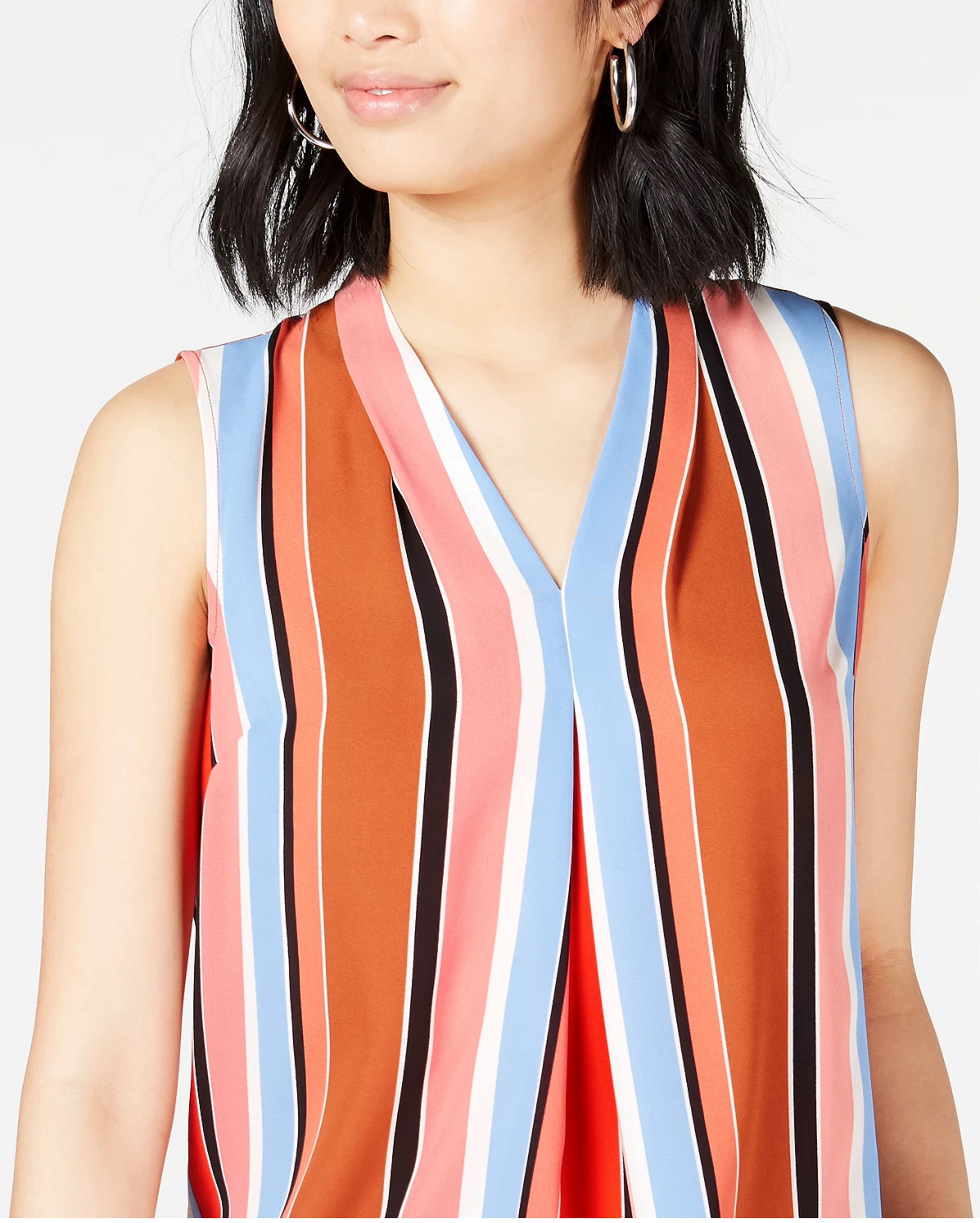 Acertos no quadril | Decote em V | Pregas invertidas | Poliéster