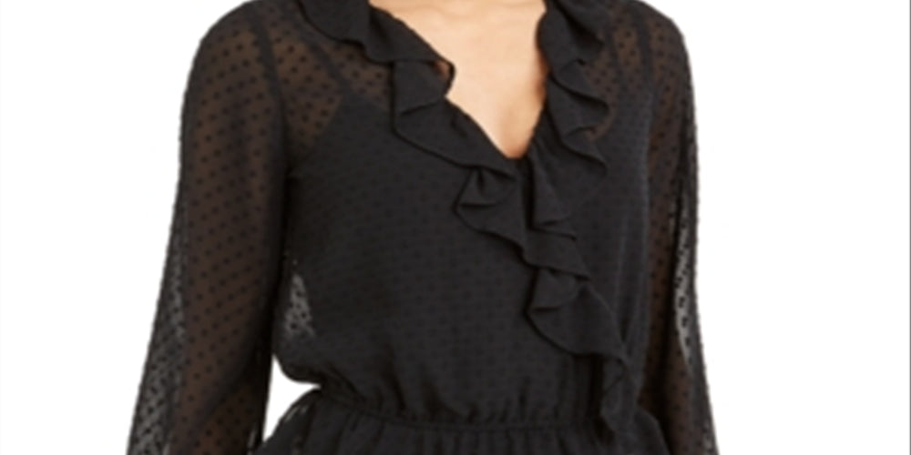 Blusa transparente com sobrepeliz Swiss Dot para mulheres Bar III, preta, tamanho pequeno