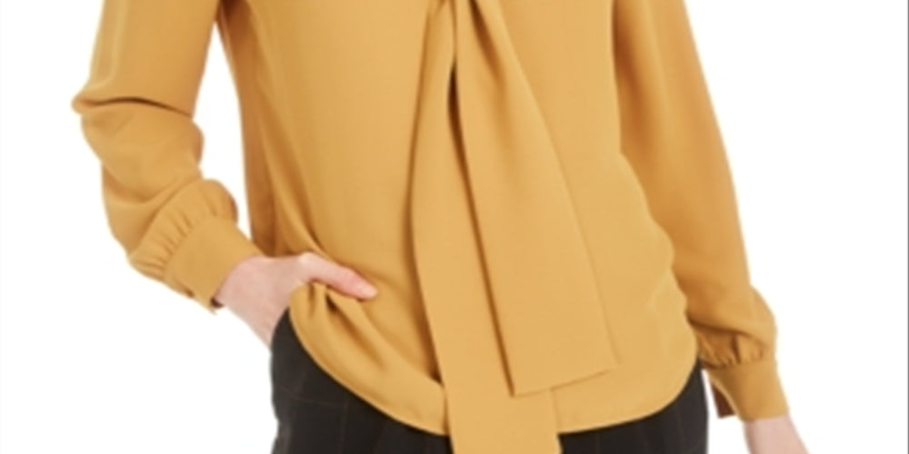 Blusa feminina Bar III com decote em V e amarração, tamanho grande, amarela