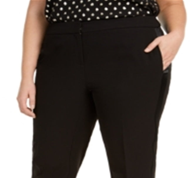 Calça feminina Bar III Trendy Plus Tuxedo com listras de cetim e perna reta, preta, tamanho 14W