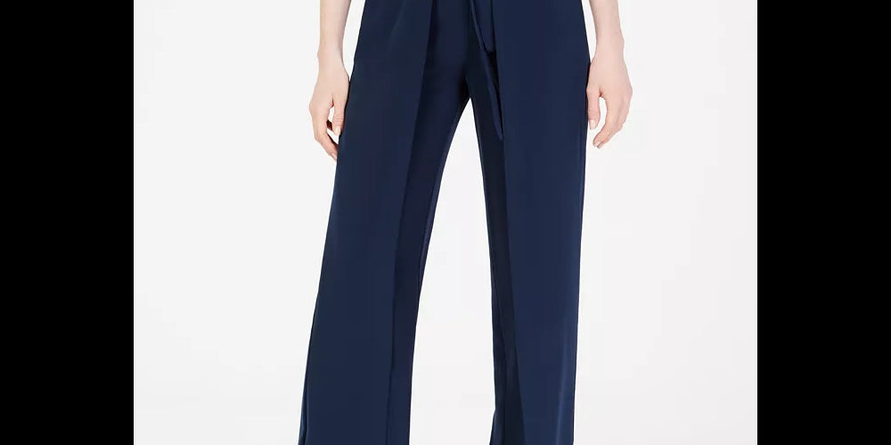 Costura interna aprox. 29-1/2 | Altura frontal aprox. 13-1/2; Altura traseira aprox. 15-1/2; perna larga que chega ao pé | Estilo de vestir; amarra na parte superior frontal | Detalhe em camadas na parte frontal da perna