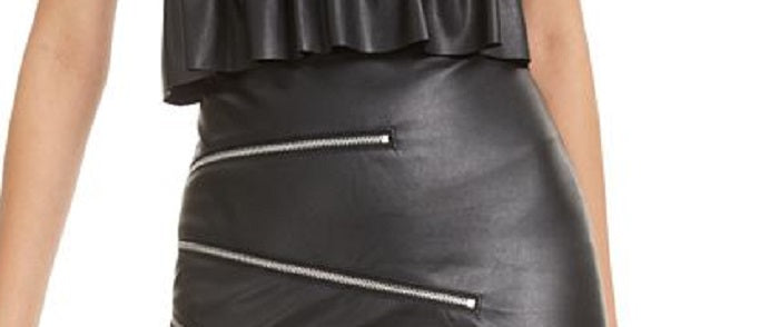 Minissaia feminina Bar III com zíper e acabamento em couro sintético, preta, tamanho P