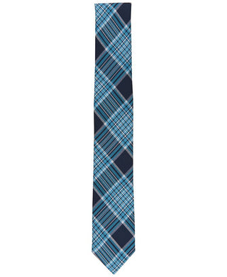 Gravata Leroy Xadrez Skinny Masculina Bar III Azul Tamanho Regular