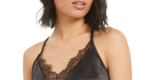 BAR III Regata feminina de renda com alças finas e decote em V, preta, tamanho 2XL