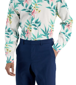 Camisa masculina Bar III de algodão orgânico tropical com ajuste fino e botões, branca/verde, tamanho GG