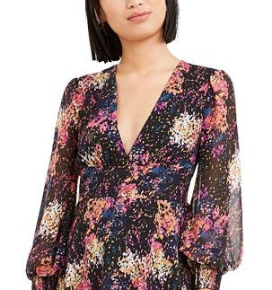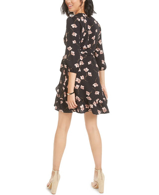 Vestido envelope feminino Bar III com estampa floral, preto, tamanho P