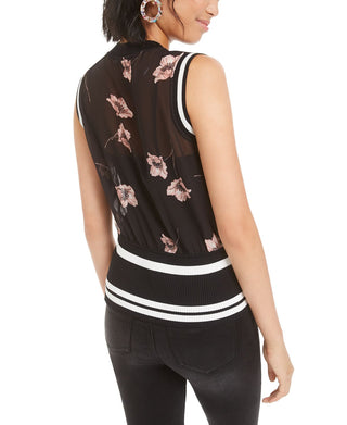 Blusa feminina Bar III semitransparente com estampa floral, preta, tamanho grande
