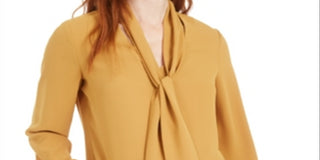 Blusa feminina Bar III com decote em V e amarração, tamanho grande, amarela