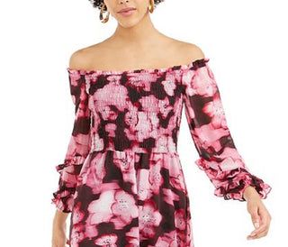 Vestido curto feminino Bar III com babados e ombros de fora, vermelho, tamanho XX-G