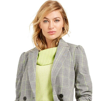 Blazer xadrez trespassado feminino Bar III para usar no trabalho, jaqueta cinza, tamanho XX-G