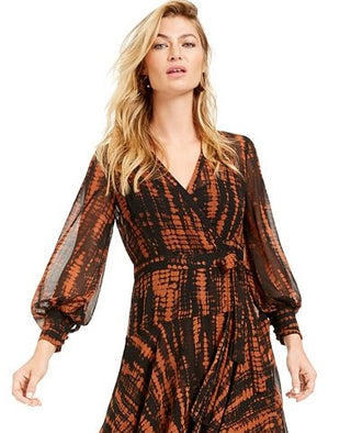 Vestido envelope feminino Bar III com estampa animal e babados, laranja, tamanho X-S