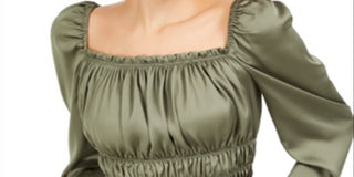 Blusa feminina Bar III com decote quadrado e manga bufante, verde, tamanho extragrande