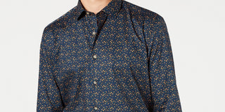 Camisa social masculina clássica com estampa floral azul-marinho, tamanho G