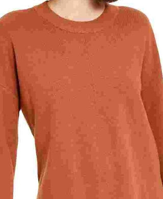 Blusa feminina Bar III de manga comprida com decote em joia, marrom, tamanho pequeno