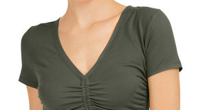 Camiseta feminina de malha franzida Bar III - Verde, tamanho P