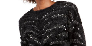 Suéter feminino Bar III com estampa animal e lantejoulas pretas e gola joia, tamanho pequeno