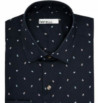 Camisa social masculina Bar III Slim Fit com estampa floral elástica, preta, tamanho 17 1/2