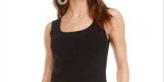 Blusa regata feminina Bar III com gola quadrada e malha canelada, preta, tamanho extragrande