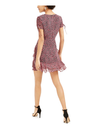 Vestido curto feminino Bar III estampado com babados, vermelho, tamanho 4