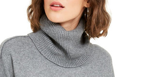 Suéter feminino Bar III de manga comprida e gola alta, cinza, tamanho XX-S