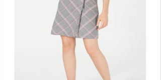 Saia xadrez feminina Bar III com zíper e detalhes, preta, tamanho 8
