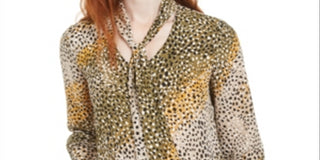 Blusa feminina estampada com decote em V, tamanho XX-S, verde, Bar III