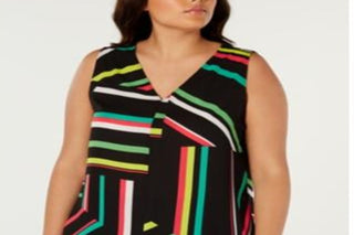 Regata feminina listrada sem mangas com decote em V Bar III, preta, tamanho 2X