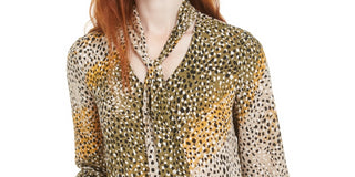 Blusa feminina estampada com amarração no pescoço Bar III, verde, tamanho pequeno