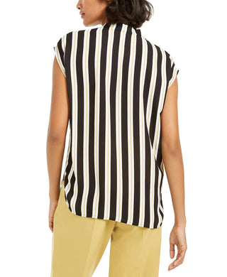 Blusa listrada com decote em V feminina Bar III, preta, tamanho XXS