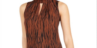 Blusa feminina Bar III com estampa animal e decote careca, marrom, tamanho pequeno