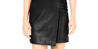 Saia de couro sintético feminina Bar III, preta, tamanho XXS