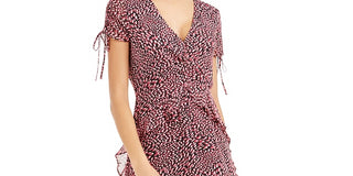 Vestido curto feminino Bar III estampado com babados vermelho escuro tamanho 10