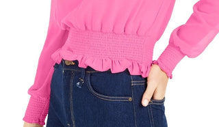 Top feminino Bar III Becca Tilley X com manga transparente e cintura franzida, rosa, tamanho médio