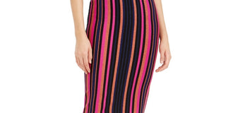 Saia lápis listrada metálica feminina Bar III rosa tamanho extragrande