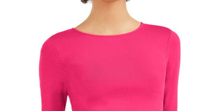 Bar III Suéter feminino de manga comprida com gola redonda, vermelho, tamanho extragrande
